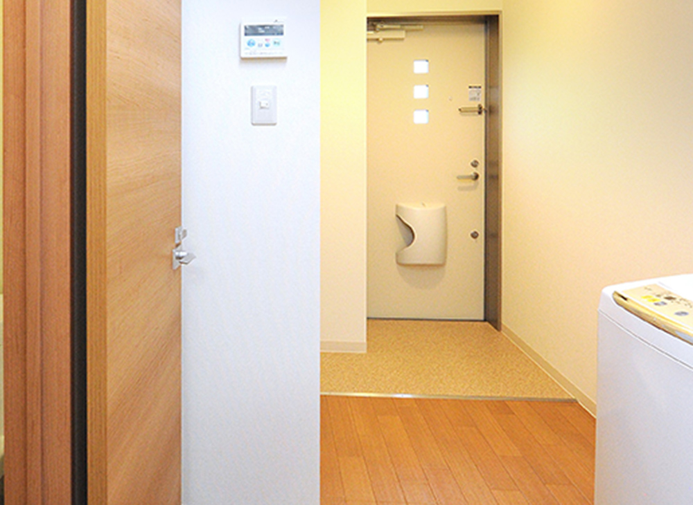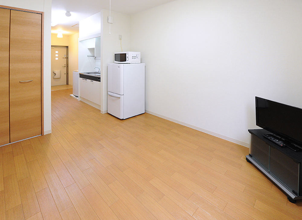 職場から徒歩圏内の場所にあるワンルームの個室寮です。家電(冷蔵庫・洗濯機・エアコン・テレビ・電子レンジ)や寝具、カーテン、照明を完備し、バス・トイレは別。無料Wi-Fiも利用できます。電動アシスト自転車のレンタルもでき、通勤も快適です。